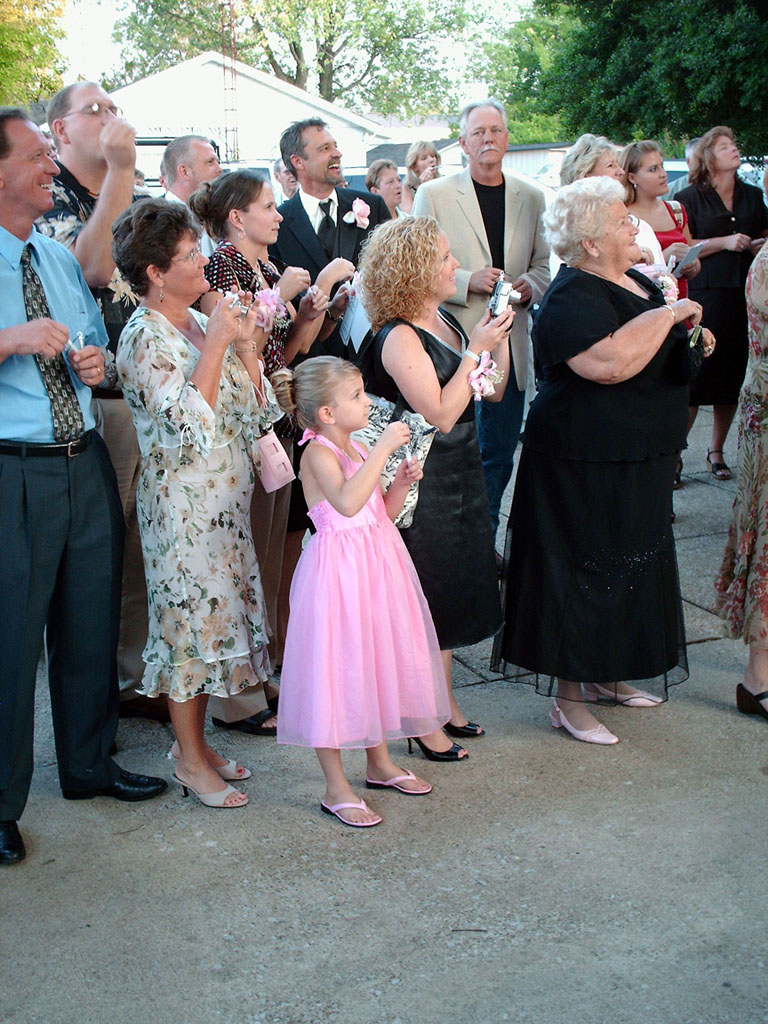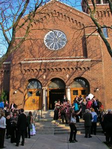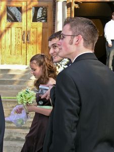 Waiting for the bride and groom to emerge from the church |